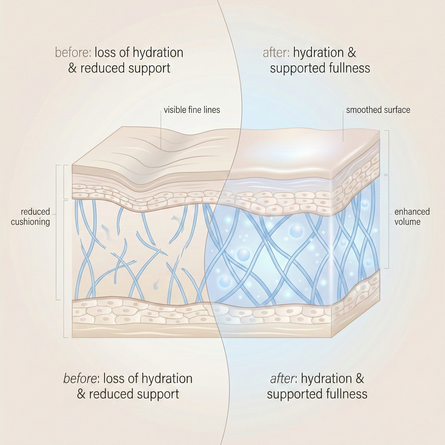 Skin can lose its cushion over time. As hydration and support decline around the eyes, mouth, and forehead, lines become more noticeable and skin can look less full. This balm helps restore that smooth, supported look.